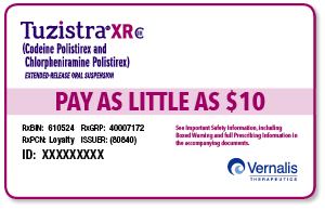 - Patients with known hypersensitivity to codeine, chlorpheniramine, or any of the product components of TUZISTRA XR.